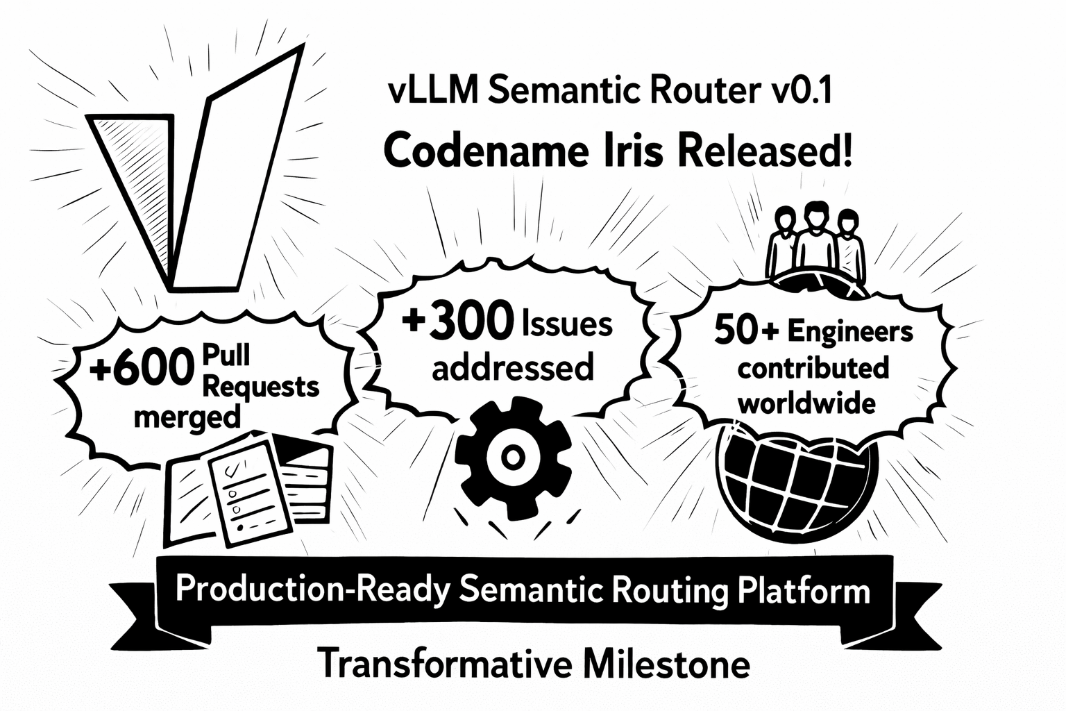 We are thrilled to announce the release of vLLM Semantic Router v0.1, codename Iris—our first major release that marks a transformative milestone for intelligent LLM routing. Since our experimental launch in September 2025, we’ve witnessed extraordinary community growth: over 600 Pull Requests merged, 300+ Issues addressed, and contributions from more than 50 outstanding engineers worldwide. As we kick off 2026, we’re excited to deliver a production-ready semantic routing platform that has evolved dramatically from its origins.